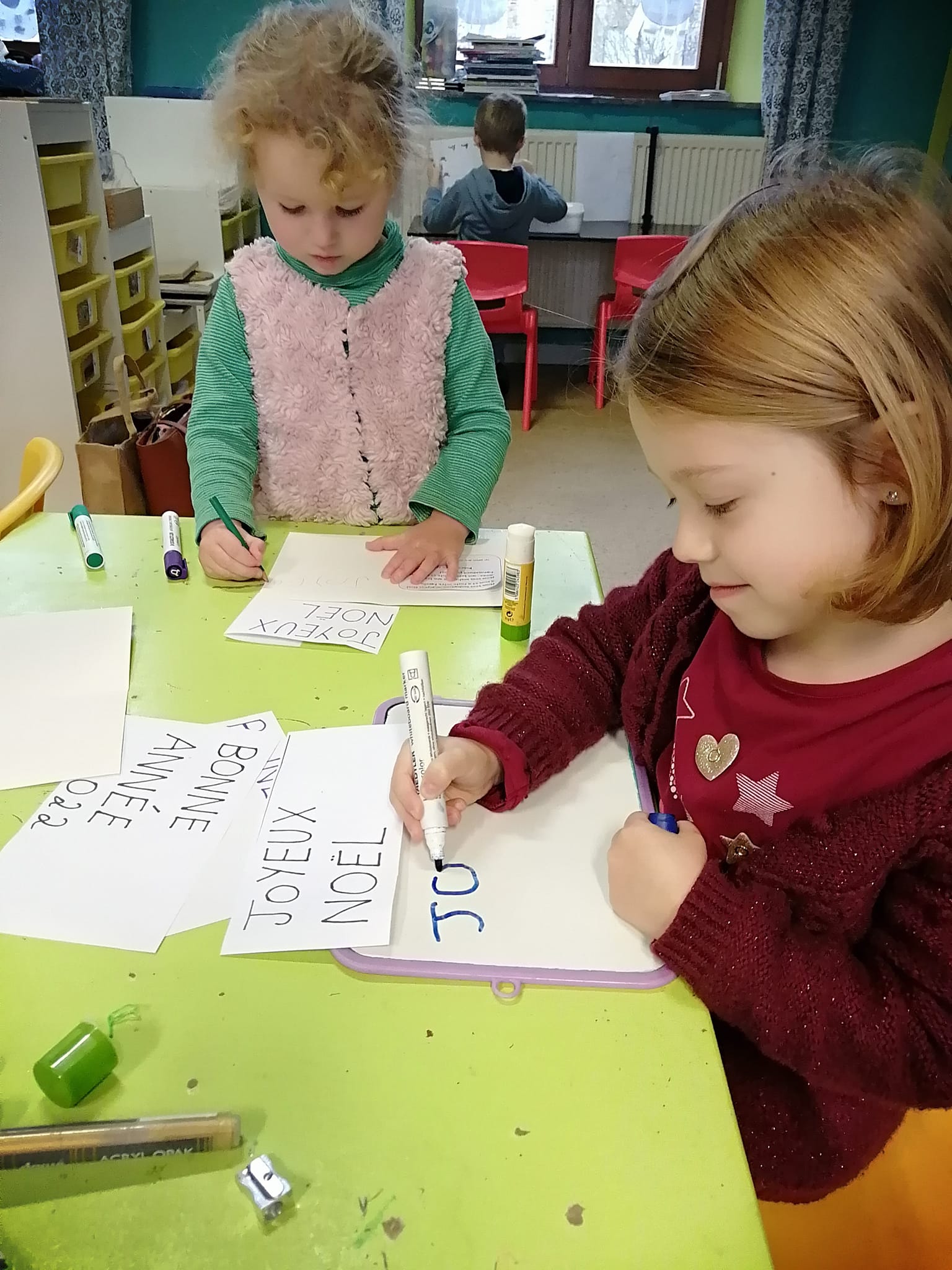 Pour les accueillir comme il se doit tout en travaillant les notions abordées en cours, Madame Meryem (notre stagiaire) a donné une mission individuelle à chaque enfant de la classe. Voici quelques consignes :