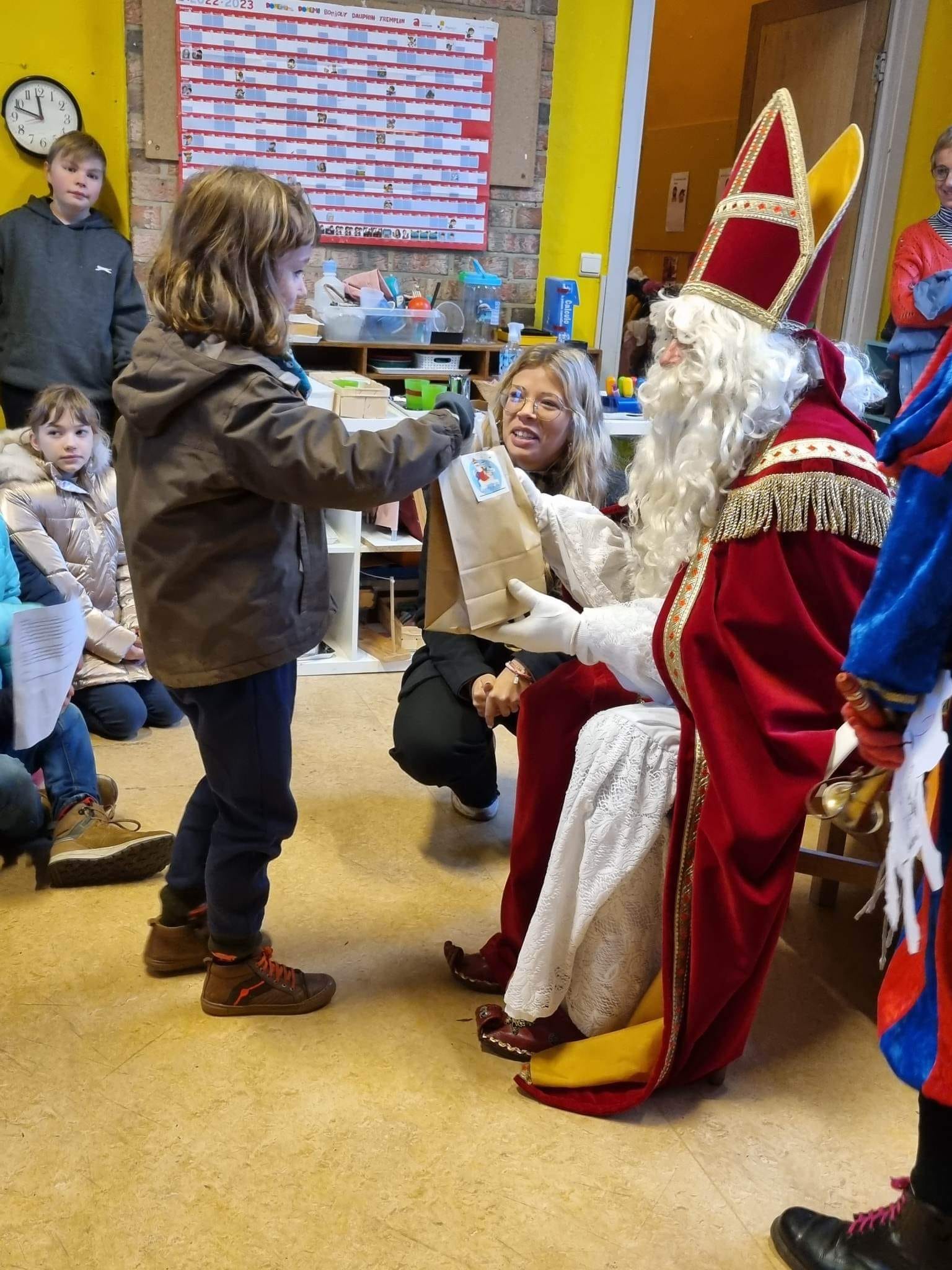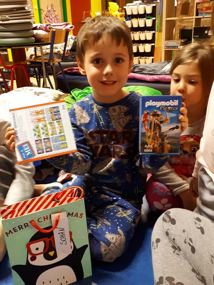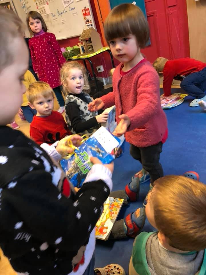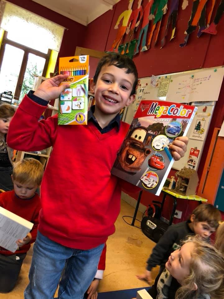 Saint-Nicolas est venu nous rendre visite ce vendredi 5 décembre et nous a bien gâtés avec l’aide du Comité des parents. Nous avons reçu: des jeux pour chaque classe, des livres mais également un sac à dos pour accompagner les enfants du maternel dans leurs activités de l’école du dehors ainsi que des places de cinéma pour le film zootopie 2 pour les enfants du primaire.