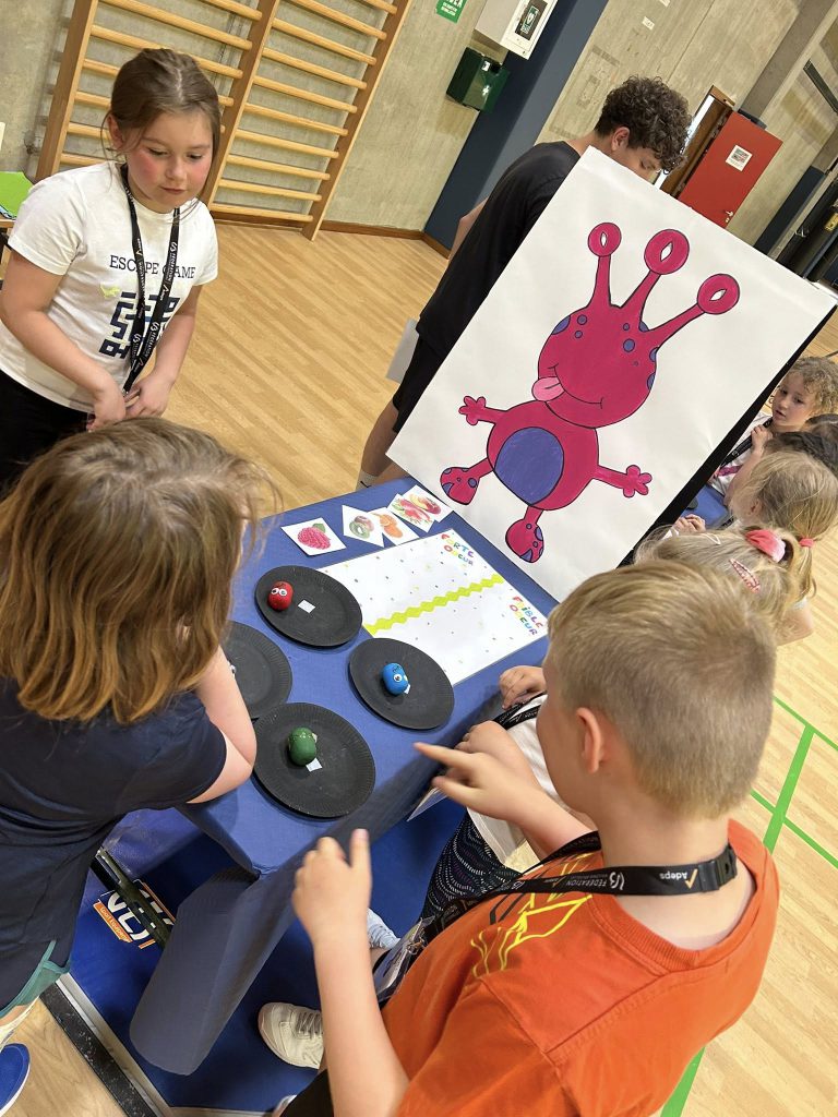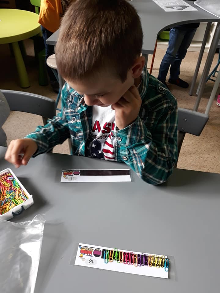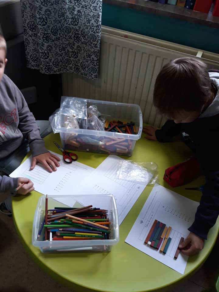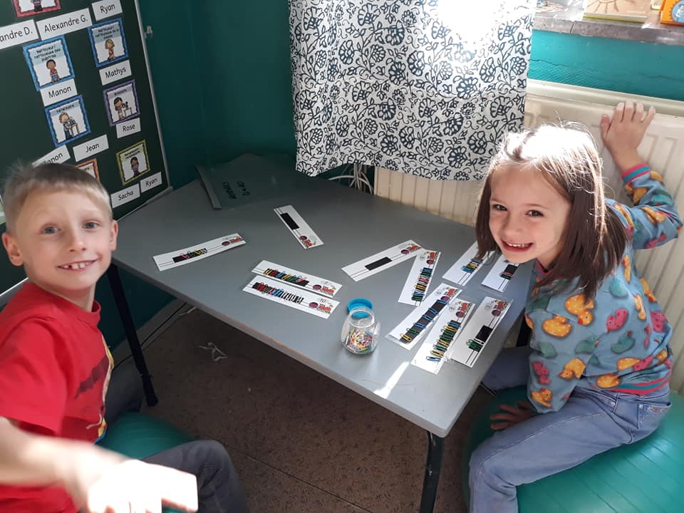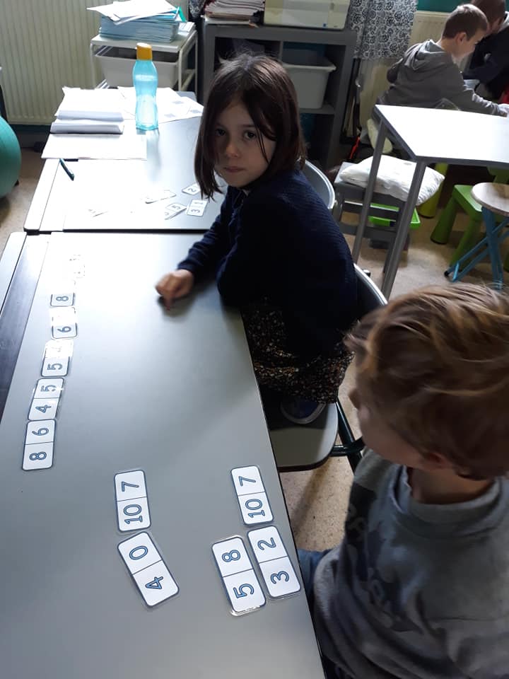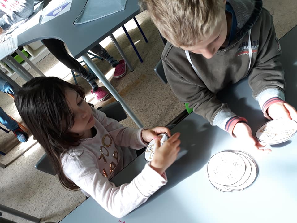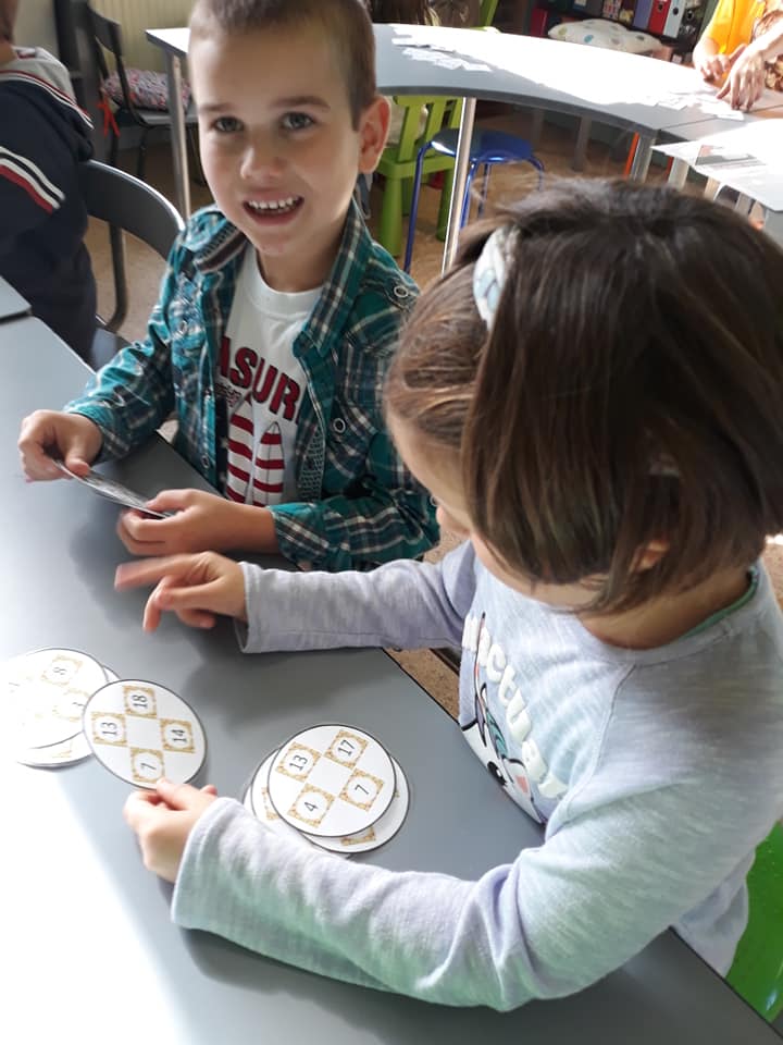 Les enfants se sont transformés en enseignants afin de préparer des défis mathématiques pour les classes inférieures. Ensuite, ils se sont rendus dans les différents groupes afin de proposer à leurs élèves d’un jour, les activités imaginées.