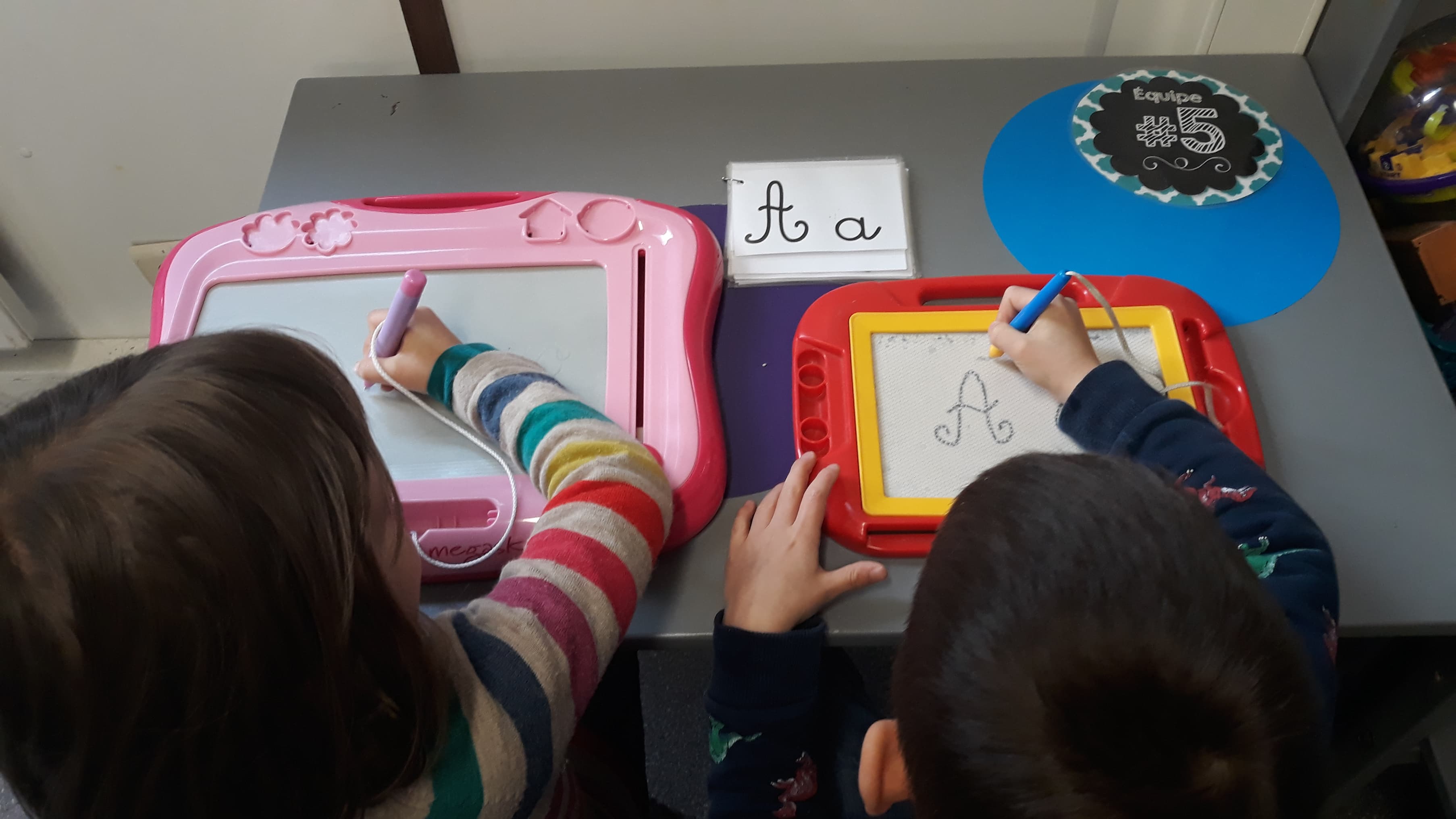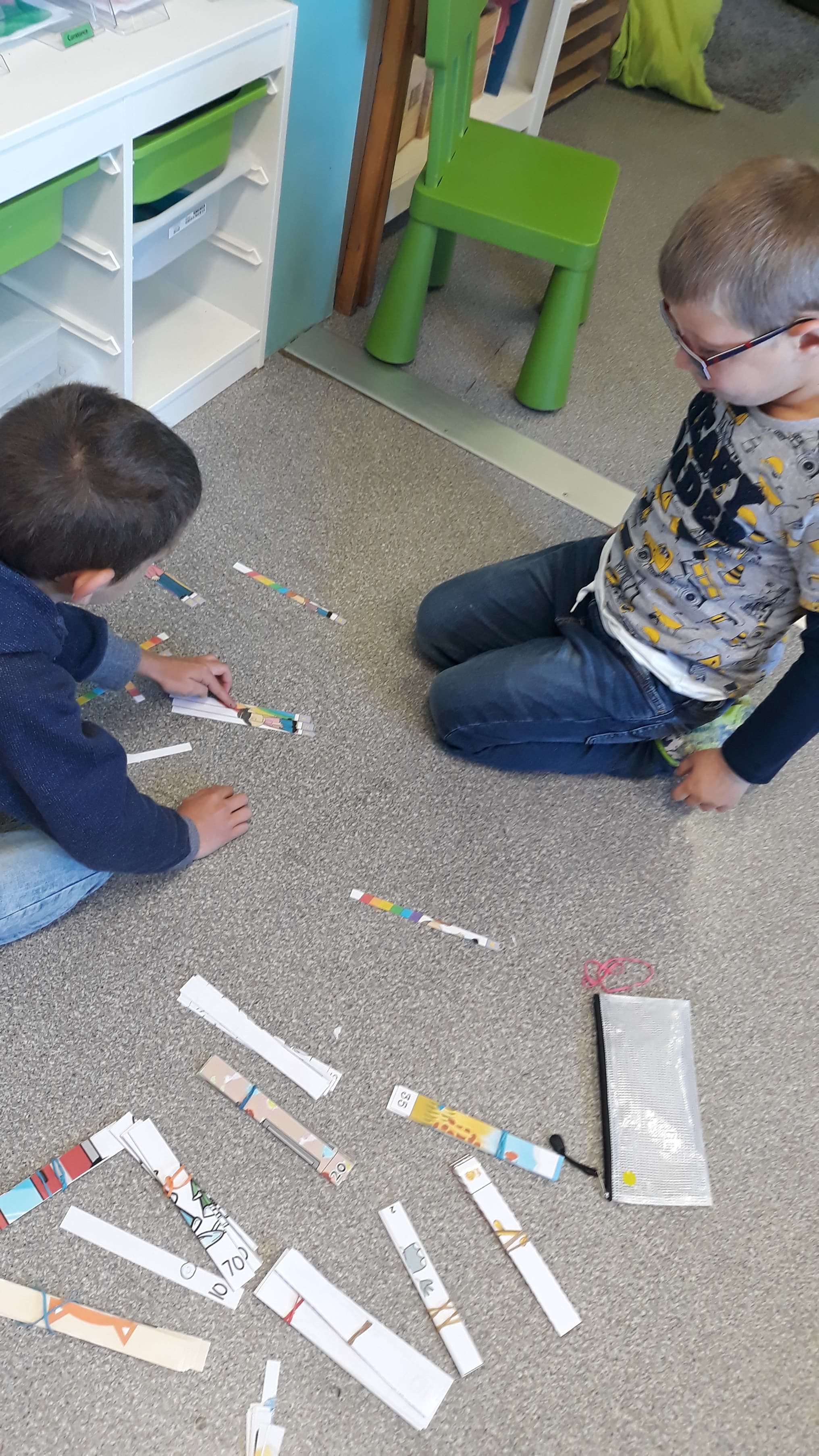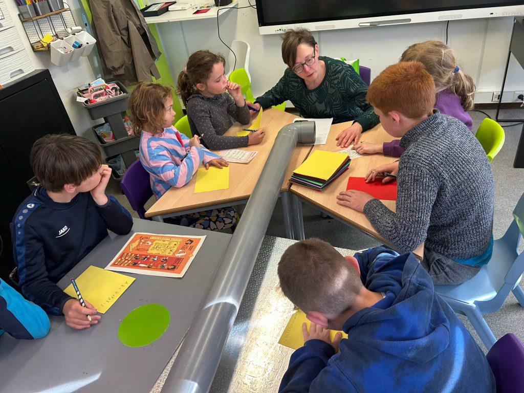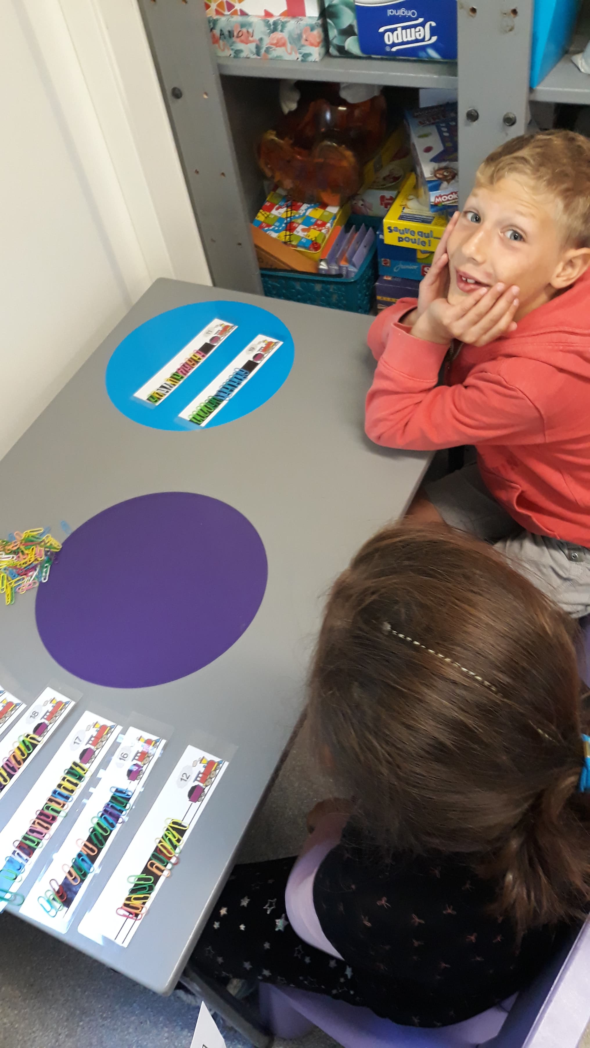 Les enfants se sont transformés en enseignants afin de préparer des défis mathématiques pour les classes inférieures. Ensuite, ils se sont rendus dans les différents groupes afin de proposer à leurs élèves d’un jour, les activités imaginées.