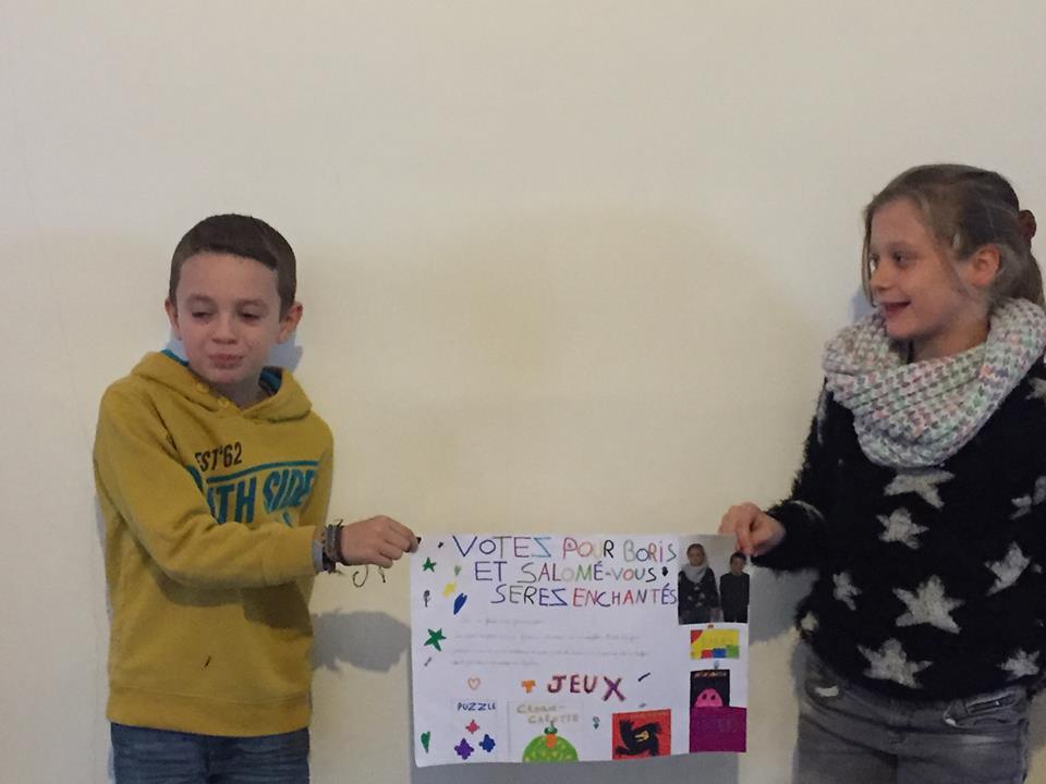 Après les présentations et argumentations, ce sont Anaelle et Enoah qui remportent ces élections.