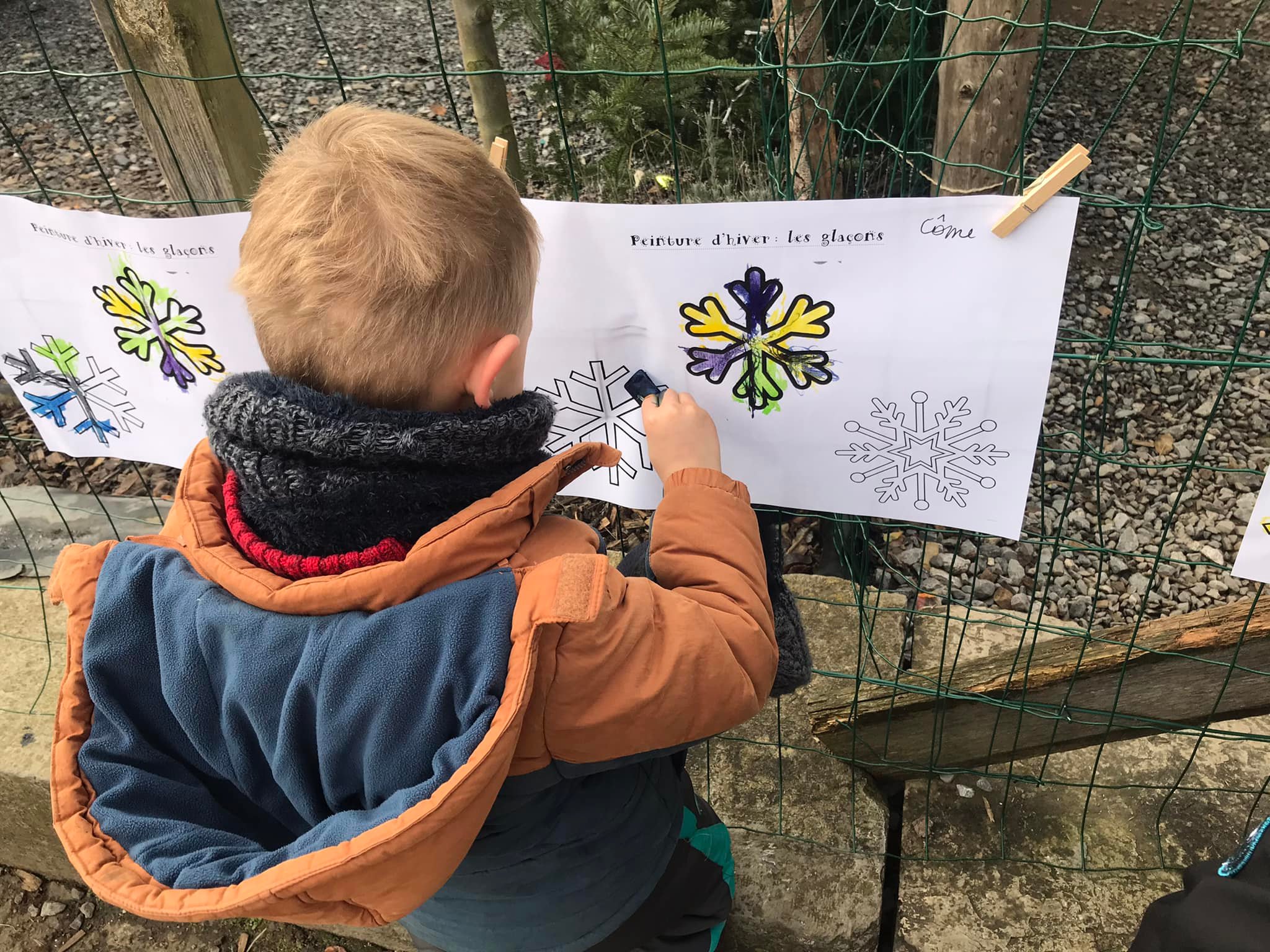 Ecole du dehors sous la neige