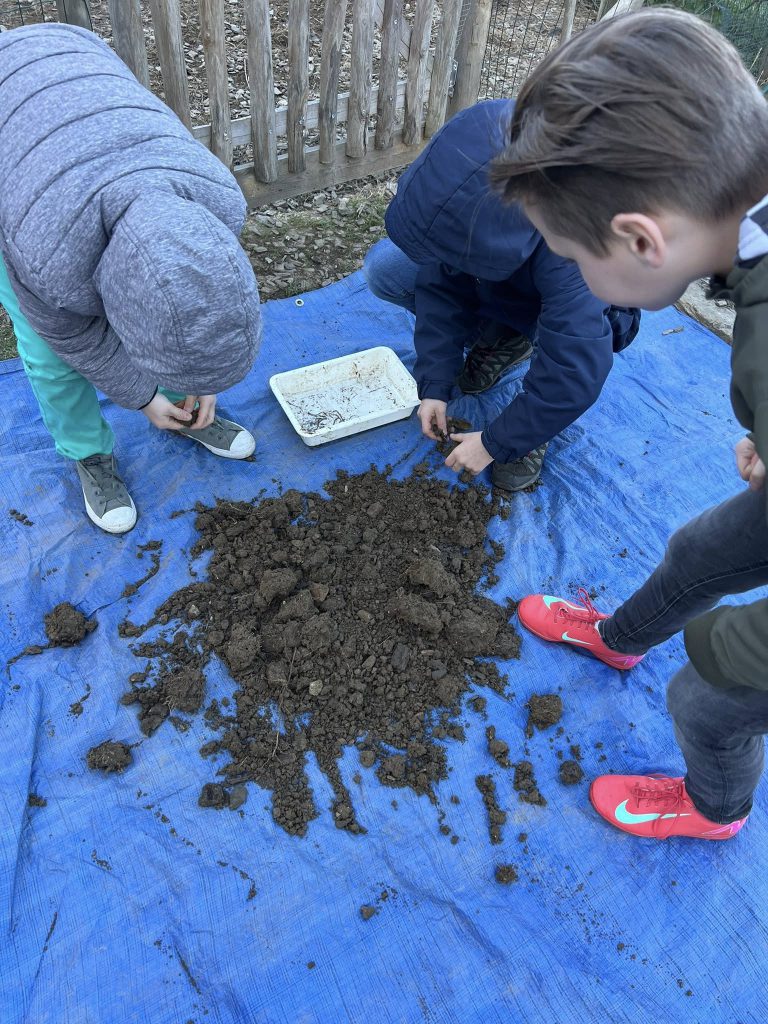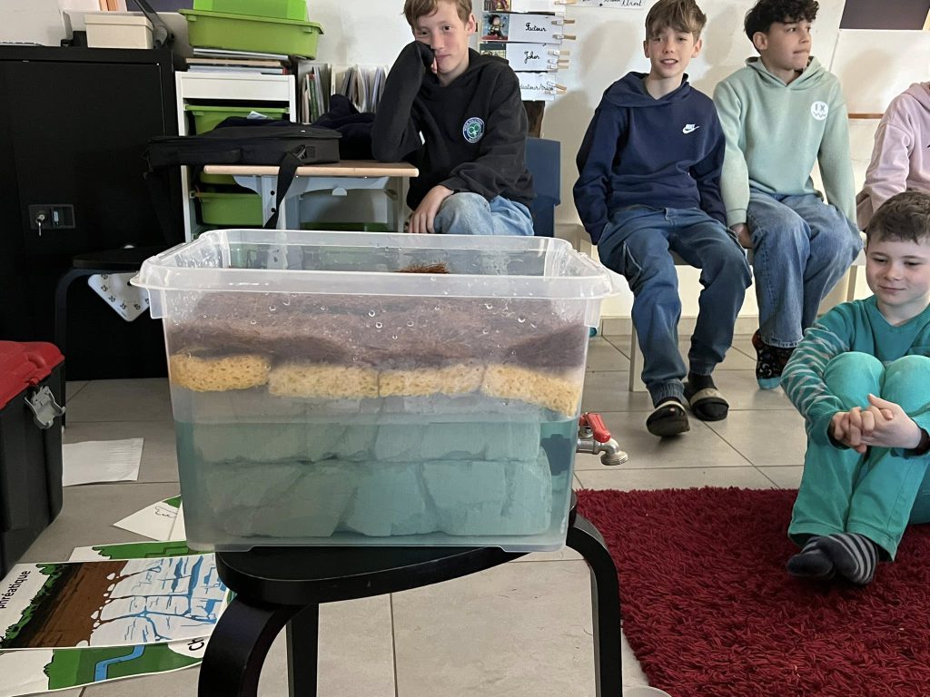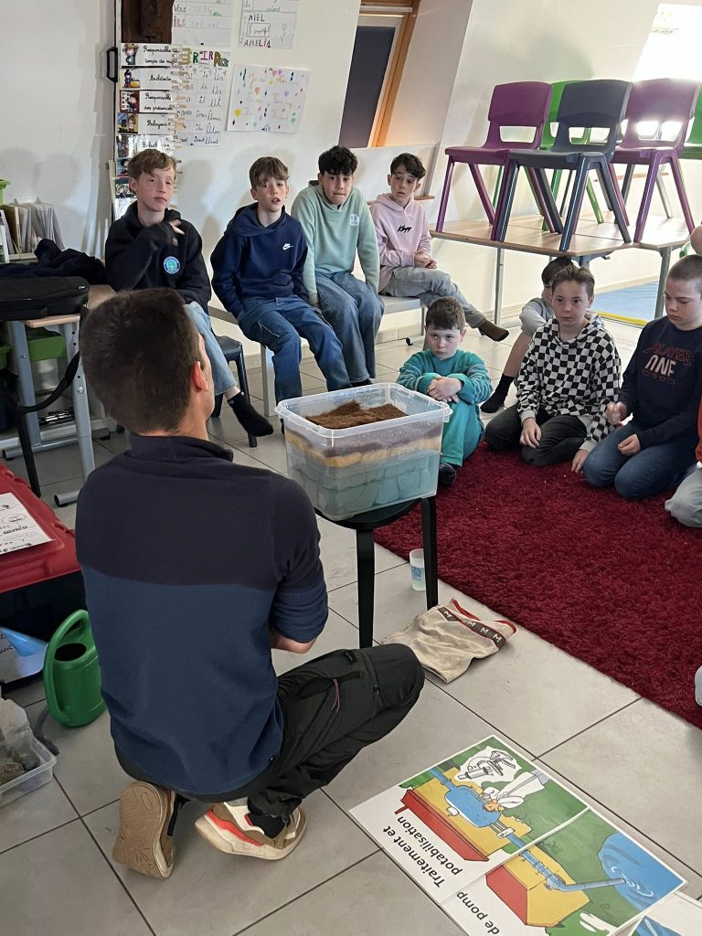 Nos élèves ont pu découvrir d’où venait l’eau du robinet, qu’est-ce qu’une nappe phréatique, la terre du jardin de l’école est-elle riche?